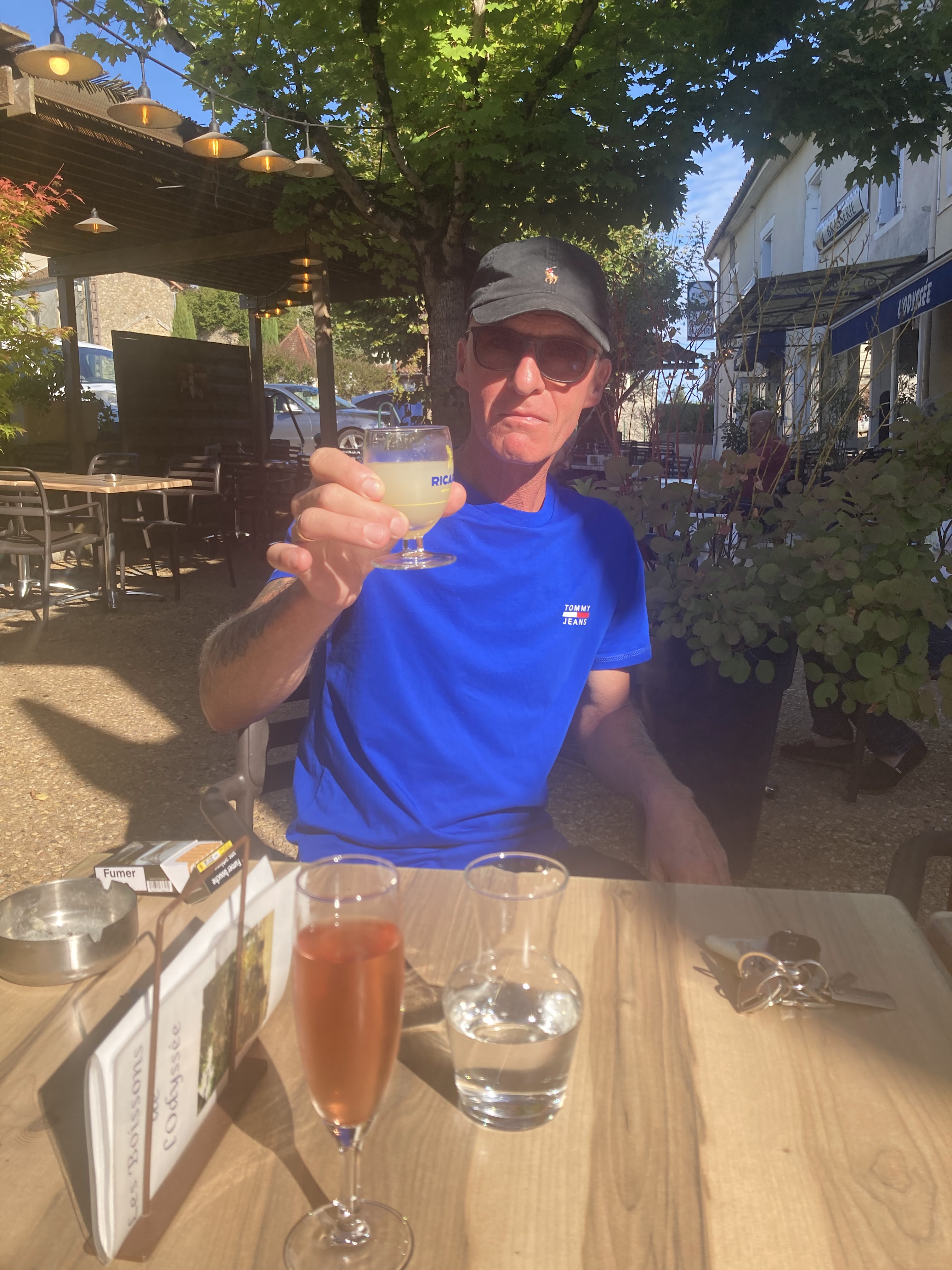 Une terrasse cosy et ensoleillée sur la place du marché de St Saoud. Les sympathiques propriétaires... de ce bistro/bar/presse... des tables propres... une belle carte et des Pastis savoureux... et tout le monde est invité à découvrir la couleur locale... Ça vaut toujours le coup de s'arrêter ! À l'année prochaine! Rudi et Rita